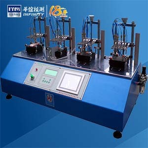 執行組件均采用日本SMC氣動組件:精密調壓閥(確保壓力精密可調)、電磁閥、油水分離器(確保氣動組件耐久使用)、單動氣缸等;-測試動作采用日本三菱PLC可編程控制器及液晶觸摸屏作程控:滿足同時打擊及排序測試;-仿真測試:可正面施壓、側面施壓,施壓間隔可調,且施壓力可調,以最大程度滿足手機在實際使用時之按鍵耐打擊情形;-測頭高低、間隔可調:測頭上下、左右間隔可調,基本滿足各種規格手機之按鍵測試;-4工位獨立動作互不干擾:中文程序設計,A、B、C、D,4個工位獨立動作(排序測試、同時測試),互不干擾;可測1組或同時測試2組、3組、4組;-多達20支測頭設計:每組5支氣缸(12mm氣缸,壓力500~5000gf),滿足多鍵式測試要求,提升測試效率,-壓力控制精準: