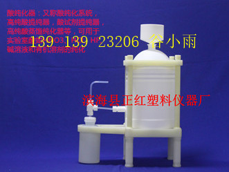 濱海正紅---酸純化器:又稱酸純化系統(tǒng),高純酸提純器,酸試劑提純器,高純酸蒸餾純化器等,可用于實驗室酸如HNO3、HCl、HF、堿溶液和有機溶劑的純化,純化后的酸和Merck的一樣好,可用于痕量和超痕量分析的樣品制備,純化器帶有液位計方便觀察里面的溶液,一個出酸口,一個排廢液口,操作維護(hù)方便,是超純凈實驗室化學(xué)反應(yīng)的必備產(chǎn)品。 --(谷小雨 139 139 23206 ; 025-8322 4668 )實驗后期可配套我單位Teflon特氟龍系列試劑瓶收取高純酸。為了滿足更多客戶的需求,我廠研發(fā)了更大規(guī)格的酸純化器(2000ml)