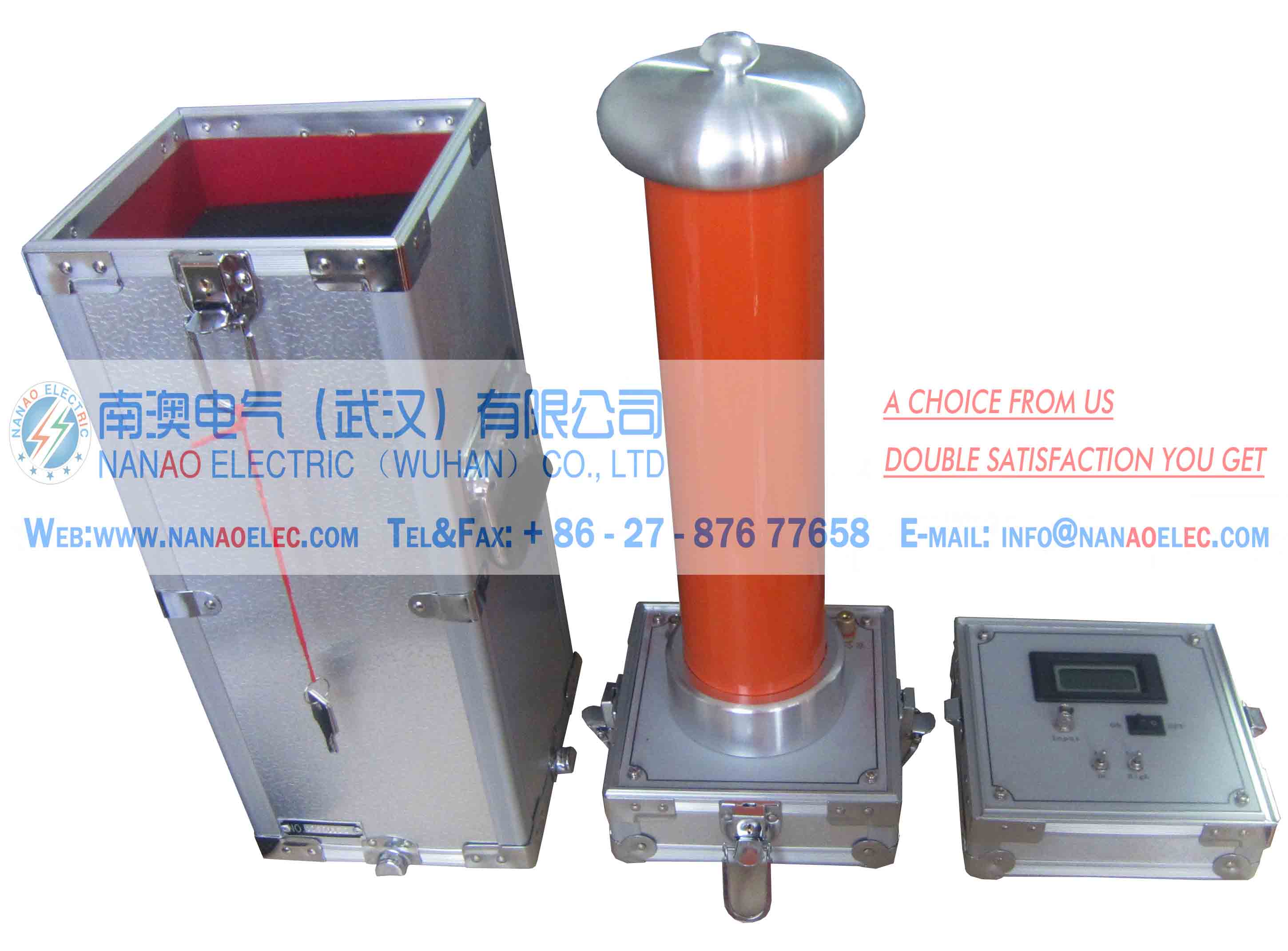AC and DC voltage divider, digital high voltage meter, high voltage gauge, high voltage digital meter, voltage divider, resistance-capacitance divider, electrostatic voltmeter, high voltage divider, AC-DC high voltage divider, AC-DC high voltage meter, AC-DC high voltage divider, AC voltage divider, DC voltage divider, AC-DC high voltage test device, resistance-capacitance AC-DC divider, AC-DC resistance-capacitance divider, AC-DC digital divider kV voltage meter, KV voltage meter, kilo voltmeter, NAFRC-type divider for AC/DC.