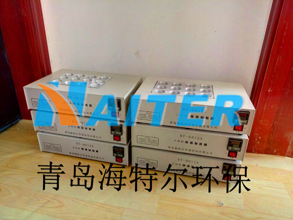 - HT-9012A型COD恒溫加熱器(消解儀)是經典方法分析污水中一種采用空氣冷凝代替水冷凝測定化學耗氧量的加熱回流裝置。它采用國際最新型PID溫控器,時間控制器、升溫速度較快,溫度緩沖小、溫度恒定均勻等特點,操作簡便,是一種實驗手段儀器化新產品。。經國家環保局環境監測儀器質量監督檢驗中心測試表明,結果符合國際標準方法ISO06066-86的要求。 采用數字化設定、顯示加熱溫度,自動控制加熱溫度,可設定加熱時間。升溫速度快,溫度恒定均勻,耗電小,操作簡單,性能穩定可靠,廣泛用于環保、醫療、衛生、食品、自來水、造紙、污水處理、印染、石化、冶金、院校等行業的水質檢測,使COD的示值測量高效、快速、經濟。