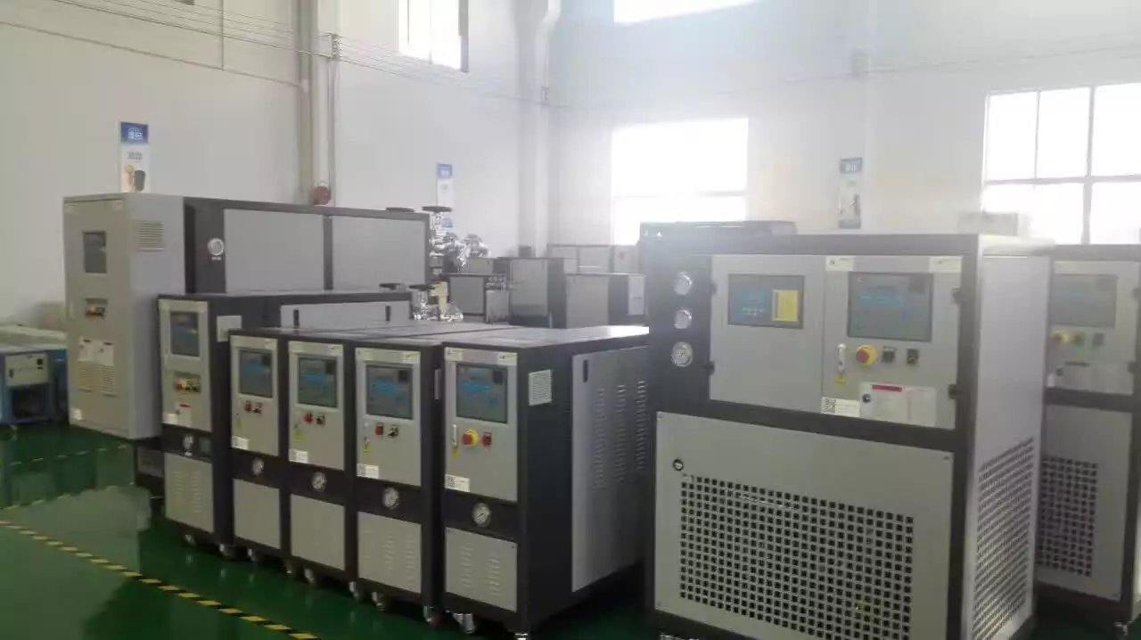 模溫機根據使用的導熱媒介來劃分的。用水的模溫機即水式模溫機,其使用溫度經改良已達到180℃;用油的模溫機即油式模溫機用于通常工作溫度≥200℃的場合,它們的共同性在于都是利用電加熱絲加熱傳熱介質(導熱油或者水)后,再經過高溫循環泵把加熱好的傳熱介質(導熱油或者水)傳送到需要控溫部位,達到傳熱的效果,利用智能溫控器檢測溫度后調節(導熱油或者水)的溫度,從而達到設定溫度,以便控制工藝溫度的精準度。我公司的油式模溫機使用溫度可高達350℃。為了防止模溫機加熱器里的油過熱,該機使用特殊的加溫及冷卻設計,溫度穩定,而獨特的雙功率加熱設計,適合不同溫控場所使用,節能效果明顯。加熱器由一定數量的的管子堆疊組成,管子里的進口加熱元件可用于導流,可以快速升溫也可以急速降溫。