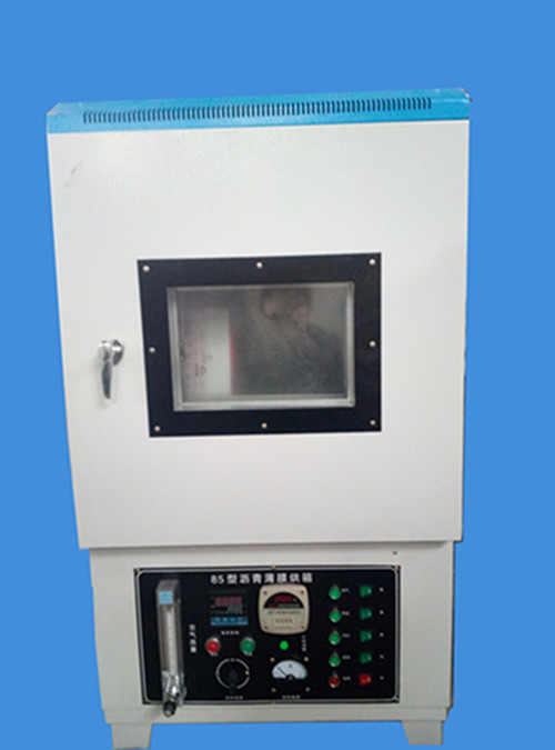 烘箱溫度的傳感器裝置在距左側25.4mm及空氣封閉箱內上頂板下約38.1mm處,以使測溫元件處于距烘箱內后壁約203.2mm位置。將測試用的溫度計懸掛或附著頂板的一個距烘箱右側中點50.8mm裝配架上,溫度計懸掛時,其水銀球與環形金屬架的軸線相距25.4mm以內。溫度控制器將能使全部裝好瀝青試樣后,在10min之內達到試驗溫度。