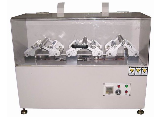 試驗原理:測試時在鞋底防滑花紋最大彎曲應(yīng)力線處,用切口刀穿透三個小口。然后安裝在試驗機夾具固定鞋底兩端,夾具一端為固定,另一端為活動,測試時夾具中間之圓軸反復(fù)凸起,用以彎折鞋底。