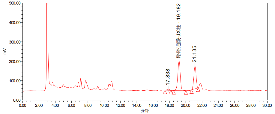 路路通液相檢測--路路通酸適用柱型號 Zafex Supfex JX-C18依照2020年版中國藥典進行測試,結果完全符合要求!歡迎老師您來咨詢!