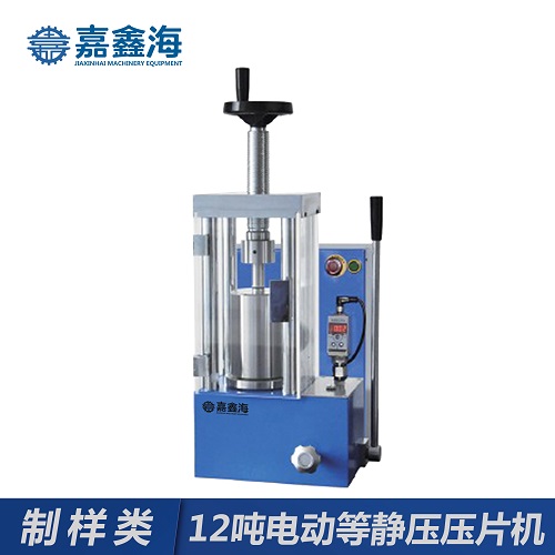 嘉鑫海12噸電動等靜壓壓片機適合對樣品成型的均勻度要求比較嚴格的用戶,可以通過等靜壓腔體對粉末直接成型,也可以將已經成型的樣品進行二次成型使其密度均勻。