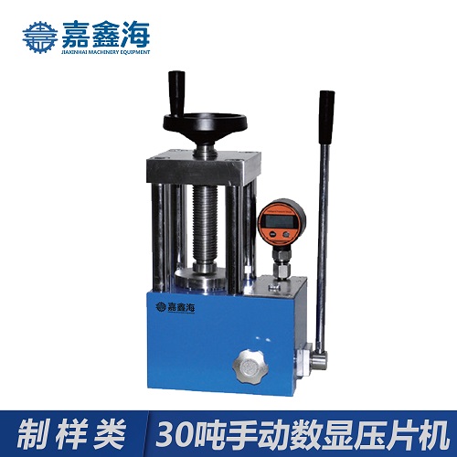 嘉鑫海30噸手動數顯壓片機體積小,壓力大,壓力控制精度高,現已應用于科研、教學、檢測、制藥、催化、化工等各個行業。此外本產品還可與傅立葉紅外光譜儀、熒光光譜儀等測試儀器配套制樣使用,可替代同類進口產品。該系列油壓機進行了改進升級,采用進口壓力傳感器密封結構,油缸、油池、主板、活塞 無密封一體式結構技術,密封效果更好,從此解決了機器漏油難題,具有體積更小,重量更輕,工作空間更大,壓力穩定性更可靠等優勢特點;而且壓片機日后的清潔調試過程也更加便捷,更好的方便了客戶進行儀器維護。