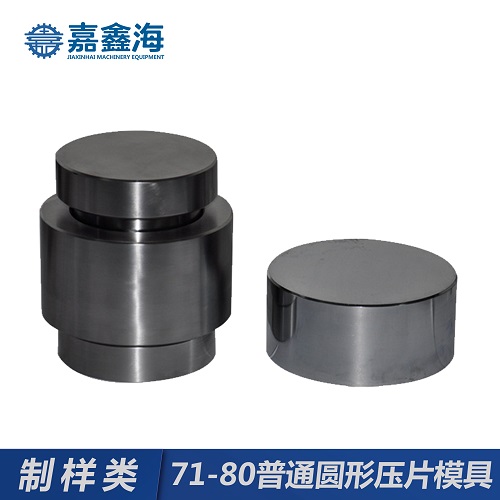 - 嘉鑫海71-80mm圓形壓片模具  模具材質:日本高速工具鋼ASSAB+17,壓頭硬度:HRC68-HRC70,腔體深度:20mm,規格:Ф2,Ф3,Ф4,Ф5,Ф6mm,20mm。30mm,50mm等,非標定制。是實驗室粉末樣品壓制成型中常見的一種模具,配合壓片機使用,可將溴化鉀(KBr)等各種粉末材料壓制成型,并制作出各種圓形試片、柱體或其他形狀進行科學分析研究;現已廣泛應用于科研、教學、催化、檢測、制藥、化工以及新材料研發等各個領域;此外,該產品還可與鈣鐵分析儀、傅立葉紅外光譜儀(IR)、X射線熒光光譜儀(XRF)等分析測試儀器配套制樣使用,可替代同類進口產品。
