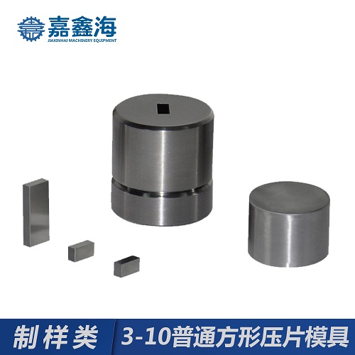 - 嘉鑫海3-10mm方形壓片模具適用于一些易成型的細長條樣品的壓制,壓片寬度3-100mm,特殊規格尺寸模具可根據客戶要求來定做。模具材質為CR12模具鋼,軟硬兼適。使用時注意不要超壓,否則容易造成壓桿變形卡死,導致模具報廢。