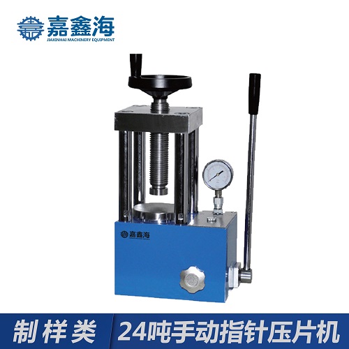 - 24噸手動粉末指針壓片機采用一體式結構,不掉壓、 不漏油、消除了多年來客戶使用壓片機漏油、掉壓困擾,從12噸至40噸客戶可根據實驗需求自行選型。