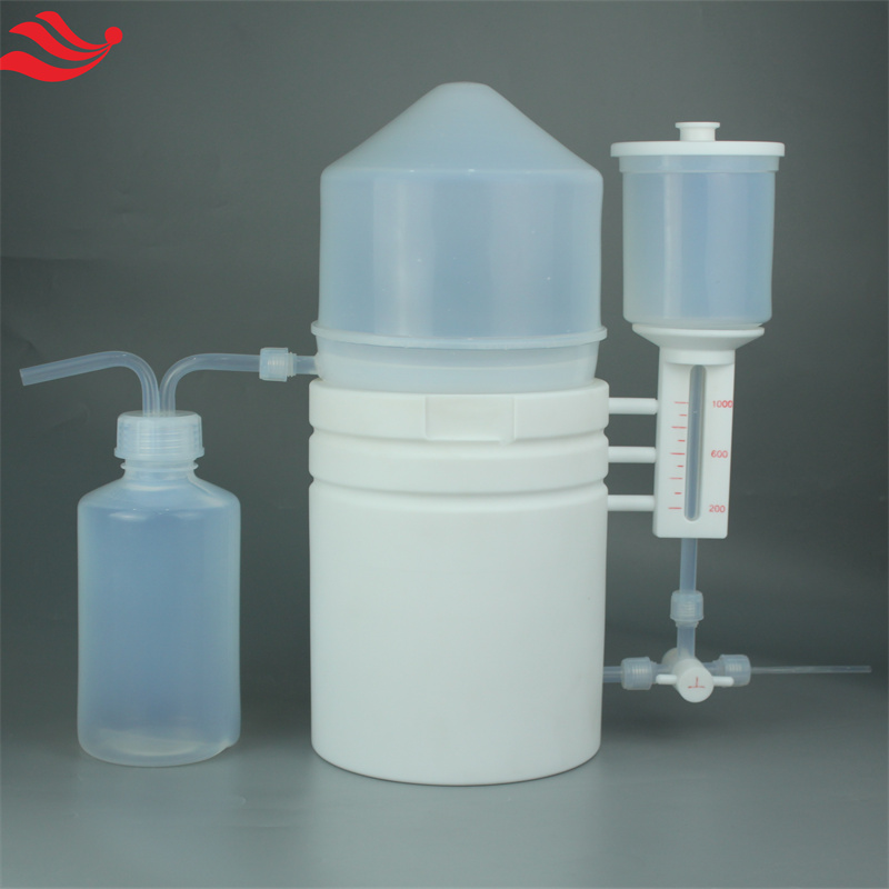 我廠的PFA酸純化系統采用亞沸騰蒸餾模式,這樣可以確保腔體內液體溫度低于沸點溫度,蒸發冷凝,制備出高純酸。為了保證高質量,使用了進口高純PFA材料,它具有極低的本底、表面光潔且沒有吸附能力。此外,純化器腔體采用透明可視設計,方便您進行觀察。而且,寶塔型冷凝器在不需水冷的情況下,能夠高效地產酸。這種酸純化系統非常適合滿足ICP、痕量和超痕量分析用酸的需求。