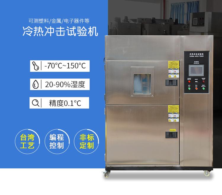 - 高低溫沖擊試驗(yàn)機(jī)是以待測物品不動之方式來測試因高低溫急速變化而對產(chǎn)品是否造成不良的影響.一般用于電子部品、汽車零件及高科技產(chǎn)品等;需要苛刻的環(huán)境條件測試及高信耐性需求的檢驗(yàn)