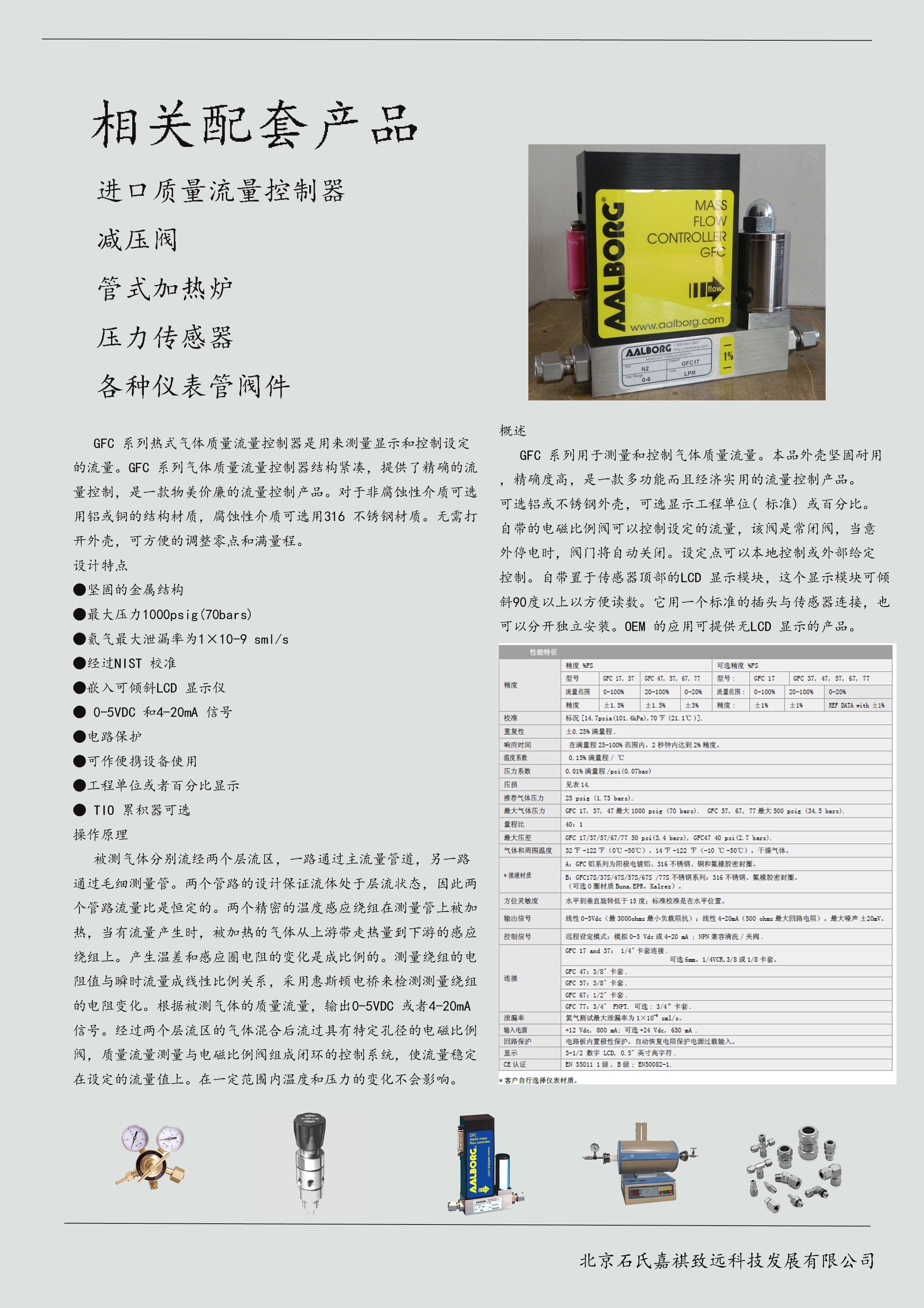 -     GFC 系列用于測量和控制氣體質量流量。本品外殼堅固耐用,精確度高,是一款多功能而且經濟實用的流量控制產品。可選鋁或不銹鋼外殼,可選顯示工程單位( 標準) 或百分比。