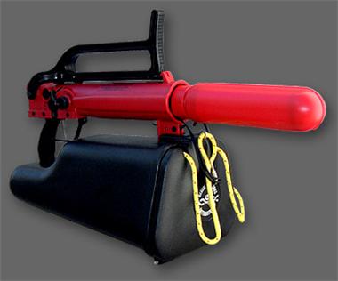 - 美國救生拋投器(ResQmax)采用壓縮空氣為動力,根據壓強,繩重,以及發射的方式,該錨鉤槍繩子的射程可達122m,應用于消防救援、水上,冰上救援、船只,船岸之間的繩索連接等。該槍定位于民用裝備,其結構和功能設置與艦艇上裝備的采用空包彈發射的軍用救生槍有很大不同。根據救援需要,彈體前方既可以安裝攀爬用的錨鉤(上圖);也可以安裝內裝救生圈的殼體。使用時將裝有救生圈的殼體或錨鉤裝在彈體上,打開保險,對準目標區域發射即可。