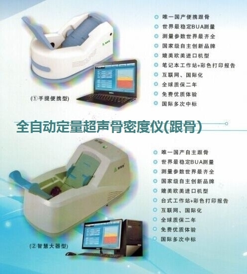 唯一國產便攜跟骨或唯一國產自主大器跟骨;全世界最穩定BUA測量,媲美歐美機型;全干不式磨損傳感器,自動適應不同人群腳型;優質密封耦合體,全程溫控自動測量;QC標準質控模板,國際質量保證;人性化足踏、足墊,全套裝置設計。