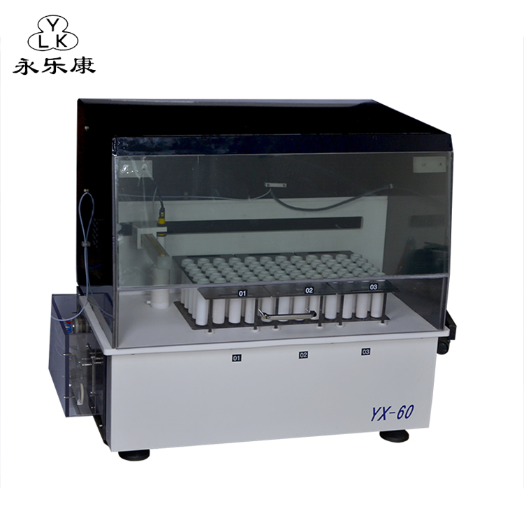 YX-60樣品全自動消解器是一個為無機分析而設計的全自動化消解和樣品前處理系統,為樣品從消解到幾乎所有需要的前處理過程提供高效,準確而且最為安全的解決方案。YX-60可以自動完成包括全自動進樣,加熱,搖勻,冷卻,走容,添加試劑等步驟,可無限量存儲消毒程序。減輕了手工樣品的制備、提高儀器分析的精度和重復性。