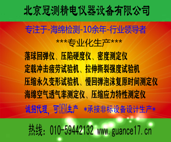 - ◆★◆【北京冠測精電儀器設備有限公司】官網 www.guance17.cn 電話:010-57223837 57223838 57223839 57223836◆★◆海綿密度測試、海綿泡綿密度計、GB/T 6343-2009 泡沫塑料及橡膠 表觀密度的測定、GB/T 21333-2008 硬質泡沫塑料 自結皮高密度材料試驗方法、泡棉壓陷硬度測試儀、海綿切割設備、海綿往復沖擊疲勞試驗機、慢回彈泡沫復原時間測定儀、泡棉壓縮應力試驗機、慢回彈海綿復原時間測定儀、